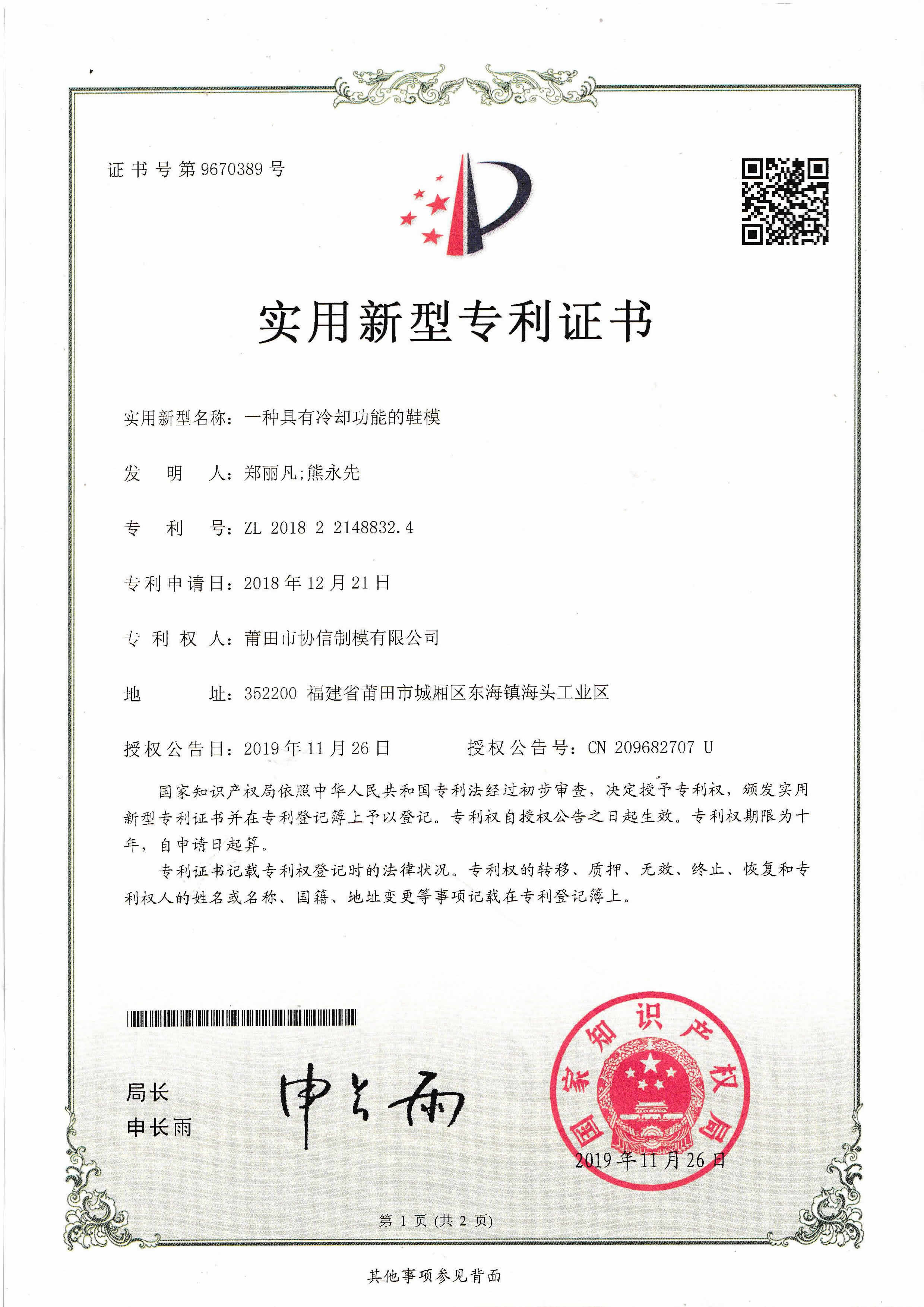 莆田市協(xié)信制模有限公司成立于2003年9月10日,由香港協(xié)信香港協(xié)信國際貿(mào)易有限公司投資組建,注冊資金120萬美元,是一家專業(yè)從事業(yè)鞋類模具設計、制造與銷售企業(yè),在行業(yè)內(nèi)享有盛譽。主要產(chǎn)品:RB、EVA、PVC、TPU、TR、TPR、ETPU、射出EVA等。公司月產(chǎn)能模具900多套,所有產(chǎn)品均采用國際質(zhì)量標準,各個生產(chǎn)環(huán)節(jié)貫徹完善品質(zhì)檢查體系。